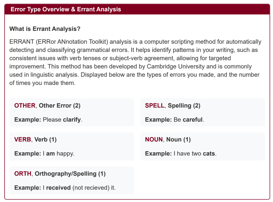 The ERRANT script finds your habits: